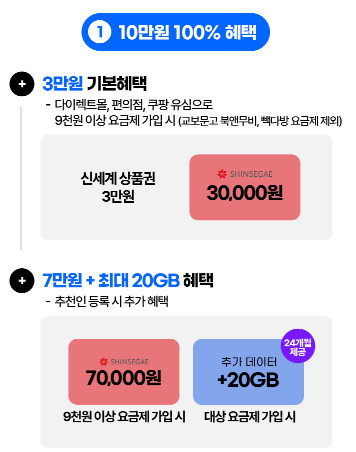 기본 상품권 10만원 + 추가 데이터 최대 20GB를 받아갈 수 있기 때문이에요^0^