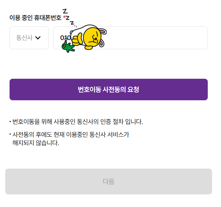 ⑨이전 통신사 해지를 위한 번호 이동 -> 사전동의 요청