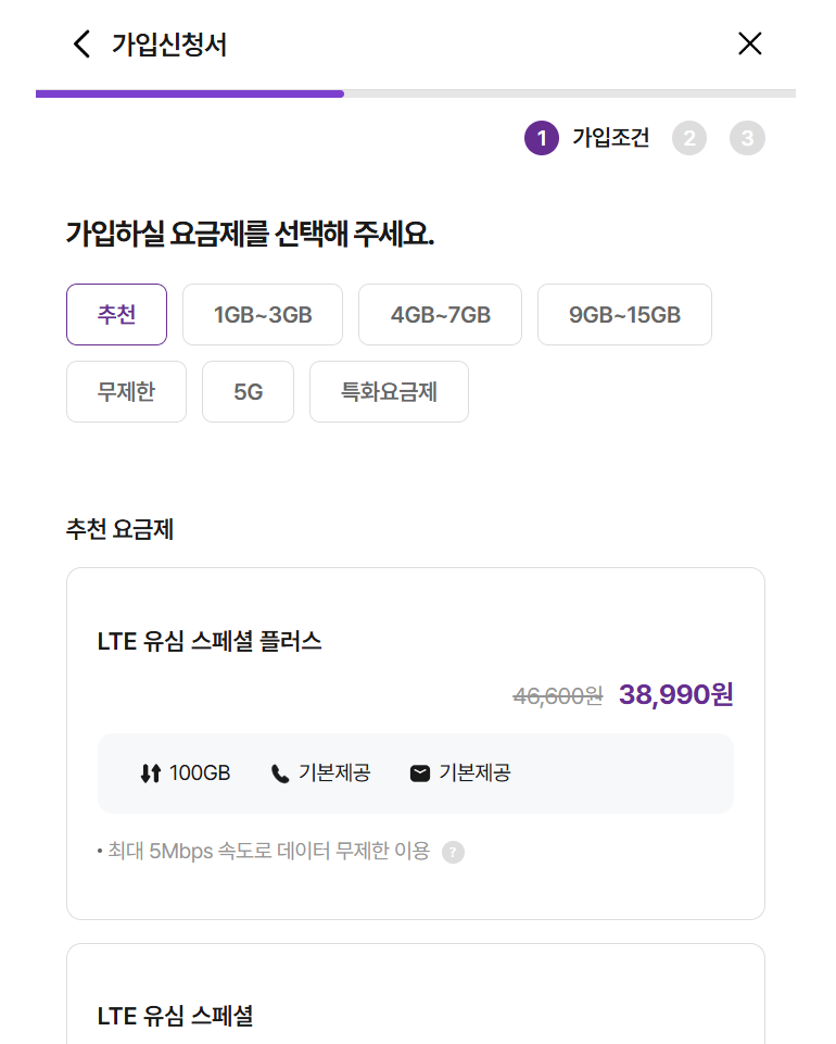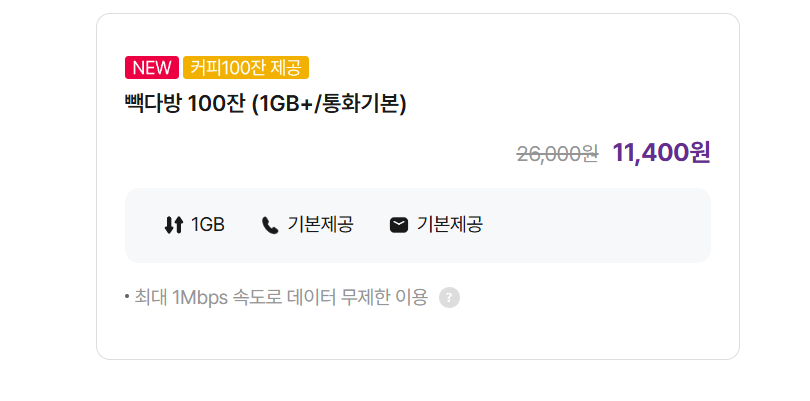 빽다방 요금제 할 경우 특화 요금제 클릭✔